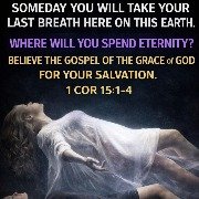 SOMEDAY YOU WILL TAKE YOUR LAST BREATHWhere Will You Spend Eternity? 1 Corinthians 15:1–4 (KJV) INTRODUCTION Every person will dieβ€”but not every person is prepared. Death is not the end; it is a doorway into eternity. The Bible does not leave us guessing where salvation is found. In this present Dispensation of Grace, God has
