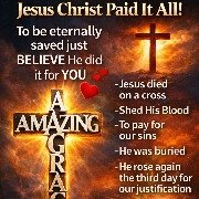JESUS CHRIST PAID IT ALL! 1 Corinthians 15:1–4 (KJV), Ephesians 2:8–9 (KJV) INTRODUCTION In every dispensation, God reveals truth progressivelyβ€”but salvation has always been by grace. In this present Dispensation of Grace, God is not asking men to work, repent of sins to be saved, or perform rituals.He declares a finished work:β€œIt is finished.” –