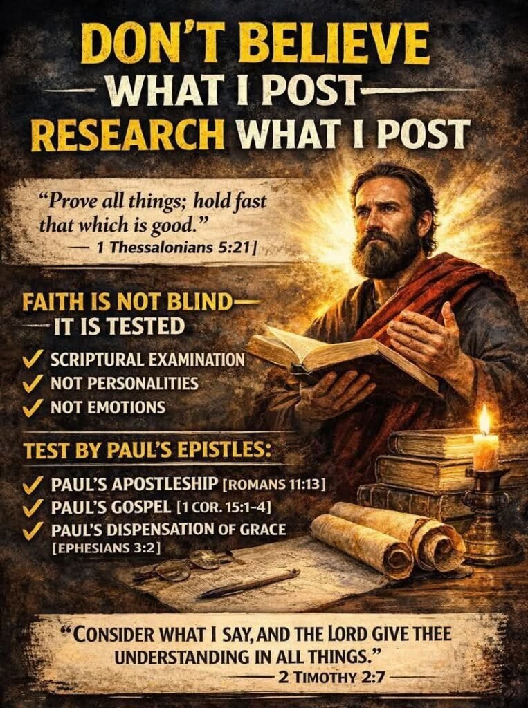 Open your Bible daily Test every doctrine Stand on Paulβs gospel Reject personality-driven faith Hold fast to sound doctrine βConsider what I say; and the Lord give thee understanding in all things.β2 Timothy 2:7 (KJV)