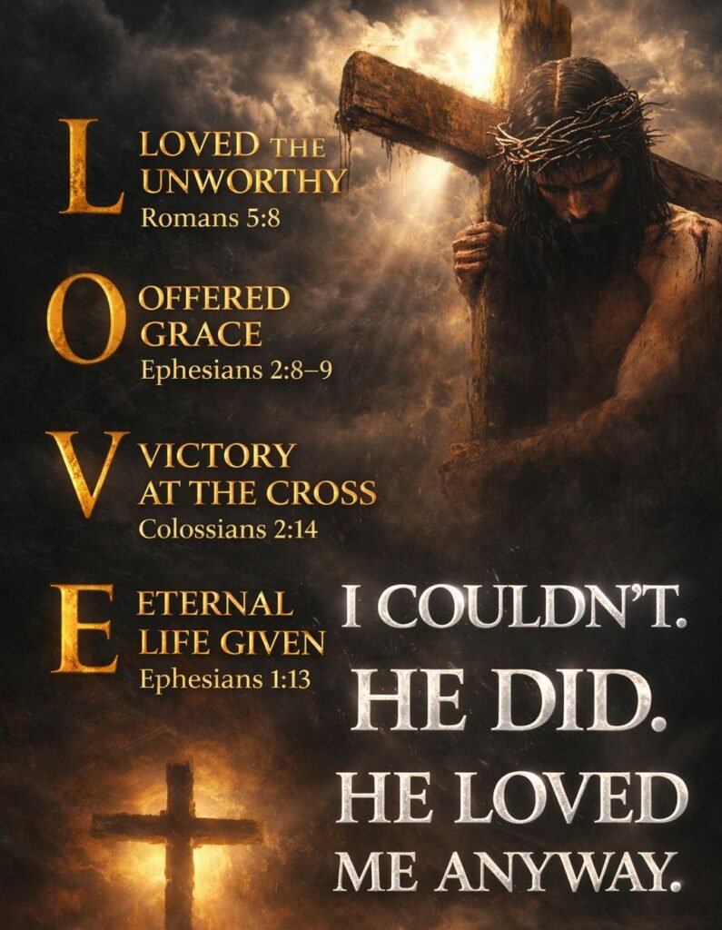 The Love of God is not a “negotiation” where He meets us halfway. It is a “rescue mission” where He comes all the way to the bottom to pull us to the top. I couldn’t. He did. And He loved me anyway.