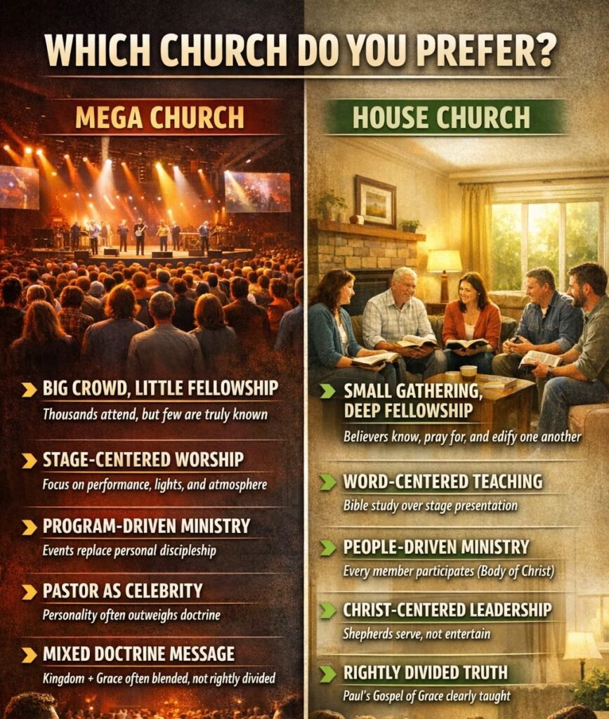 In the dispensation of the grace of God (Eph. 3:2), the Church is not defined by size, stage, or spectacle, but by sound doctrine, sincere fellowship, and Spirit-led edification. Paulβs pattern emphasizes the Body functioning together, not spectators consuming a service.