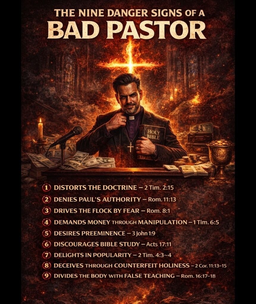 Today we expose NINE CLEAR BIBLICAL DANGER SIGNS OF A BAD PASTORβnot by opinion, but by Godβs Word rightly divided.