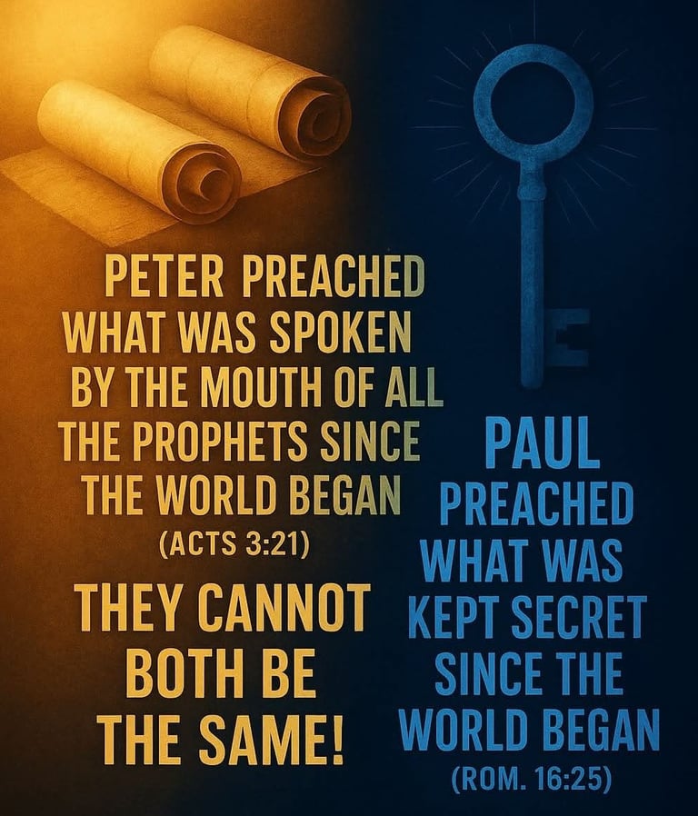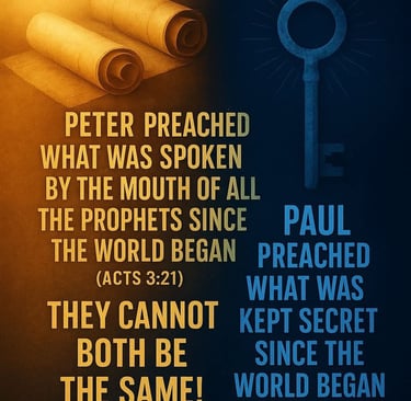 Dispensational Note: Peter preached the Gospel of the Kingdom (Acts 2โ3), Paul preached the Gospel of the Grace of God (Acts 20:24).