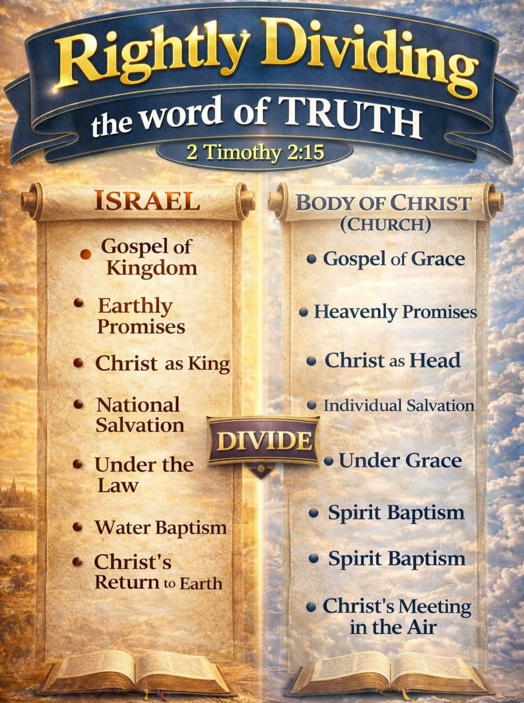 Rightly dividing the Word of Truth does not divide Christβit displays Godβs wisdom. When Israel and the Church are confused, Scripture is distorted. When they are distinguished, truth shines clearly.Godβs Word is perfectβbut it must be handled properly.