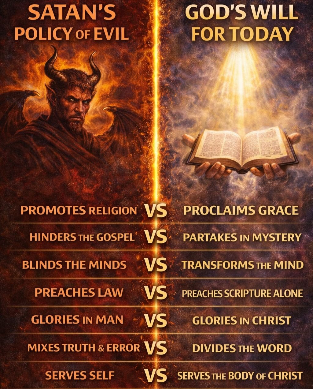 We are living in this present evil world (Galatians 1:4), where Satan actively operates through religion, deception, and counterfeit righteousness. Many believers fail to discern Satanβs policy because they do not rightly divide what God is doing today in the Dispensation of Grace.