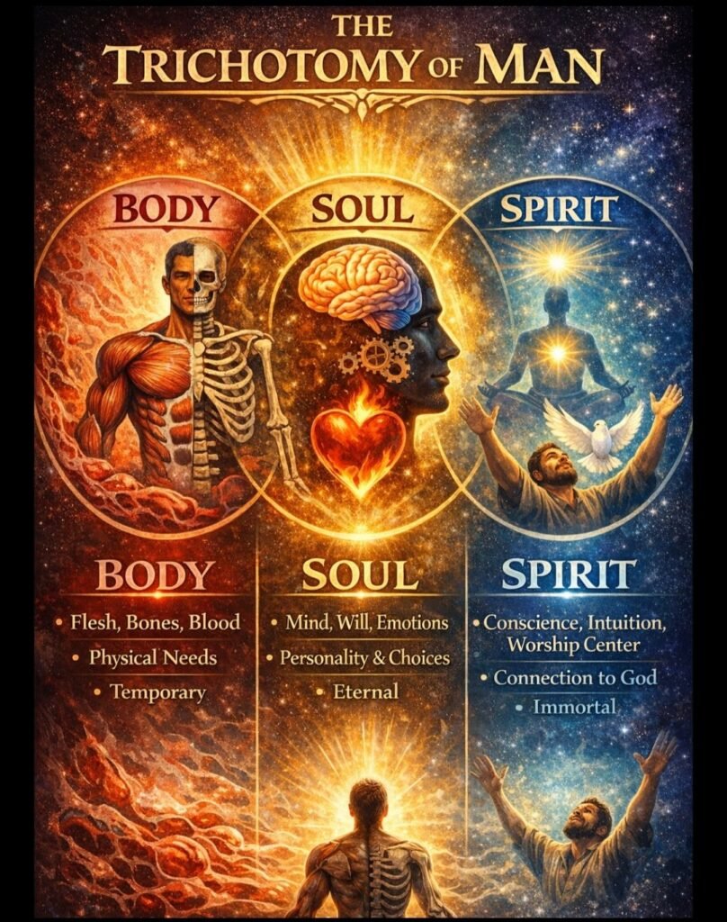 The investigative findings are conclusive. The workman of God who understands the Trichotomy of Man is equipped to navigate the complexities of his own internal walk and the challenges of the world. He does not treat his body as an enemy, but as a sacrifice. He does not treat his soul as an authority, but as a student. He does not treat his spirit as a mystery, but as a new creation. “Walk in the Spirit, and ye shall not fulfil the lust of the flesh” (Galatians 5:16).