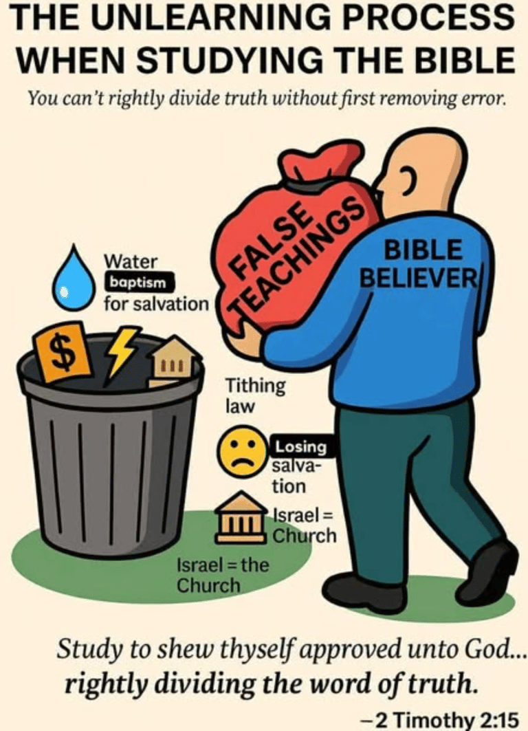 When we open the Bible, we often carry with us denominational baggage, cultural assumptions, and church traditions. Yet Paul commands us to โrightly divide the word of truthโ (2 Tim. 2:15). That means we must go through a process of unlearning โ setting aside what man has taught, and embracing what God has revealed through Paul concerning the dispensation of grace.