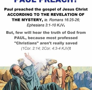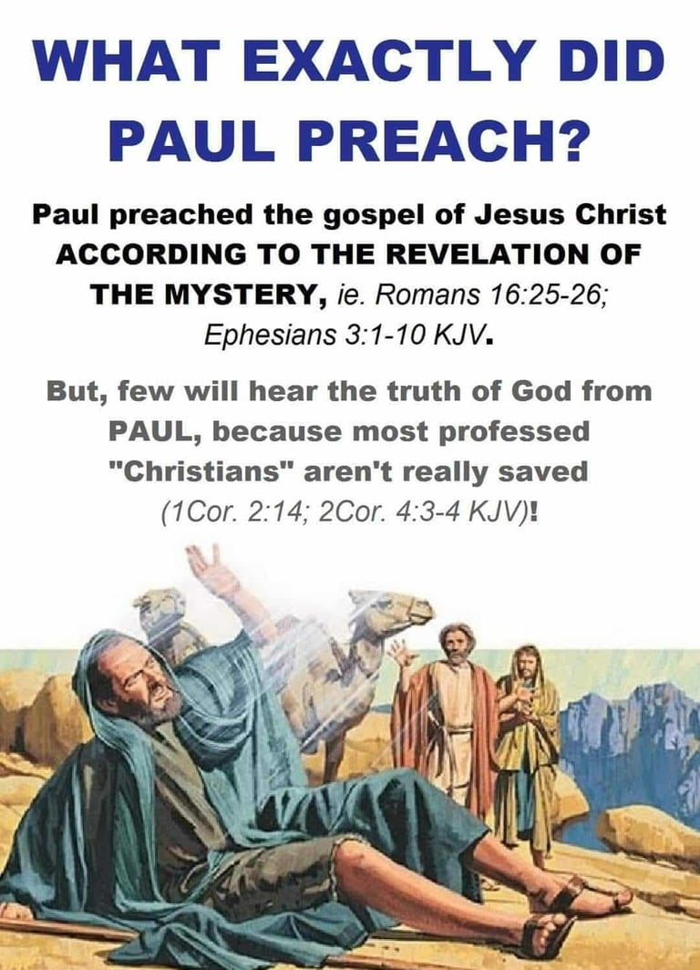 Paul preached the gospel of grace, not Israelโs kingdom gospel. It was a mystery hidden before the world began and now revealed. To rightly understand the KJV Bible, one must acknowledge the mystery, follow Paulโs pattern, and stand firm in his gospel (1 Corinthians 11:1; 2 Timothy 2:8).