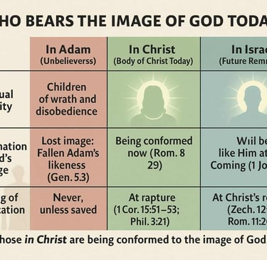 The Body of Christ alone bears Godโs image now, Israel will bear it later, the lost never willโunless they believe.